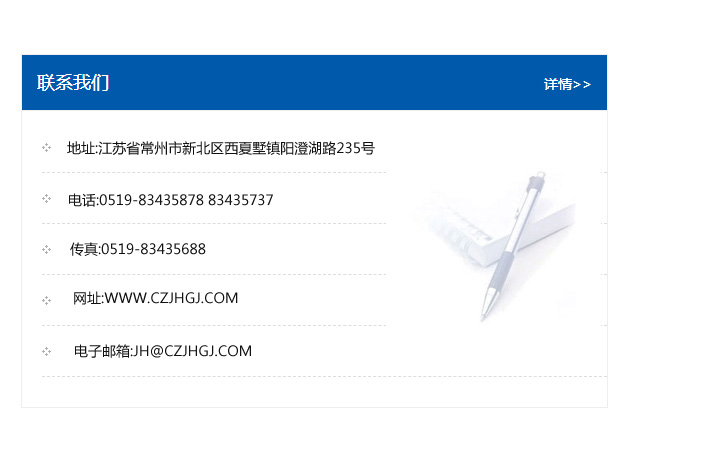傳真:0519-83435688    郵編:213135    網址:WWW.czjhgj_com.jinyangchf.com    電子郵箱:JH@czjhgj_com.jinyangchf.com